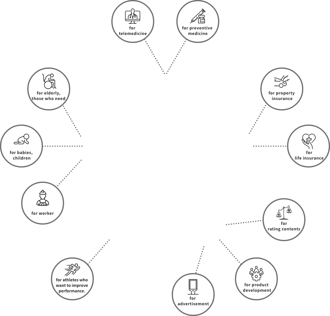 We use the biometric information management for our business providing intelligence and prediction, expanding human potential, and contributing to solve social issues.