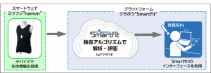 クラボウは、スマートウェアを使用して、暑熱環境下における作業現場のリスク管理をIoTで支援するシステム“Smartfit™”のサービスを2018年5月より提供開始し、ミツフジは独自の技術で開発した銀めっき導電性繊維を電極として編み込んだスマートウェアから生体データを取得し、分析したデータを利用した生体情報マネジメントシステム”hamon®”を2016年12月に発表しました。