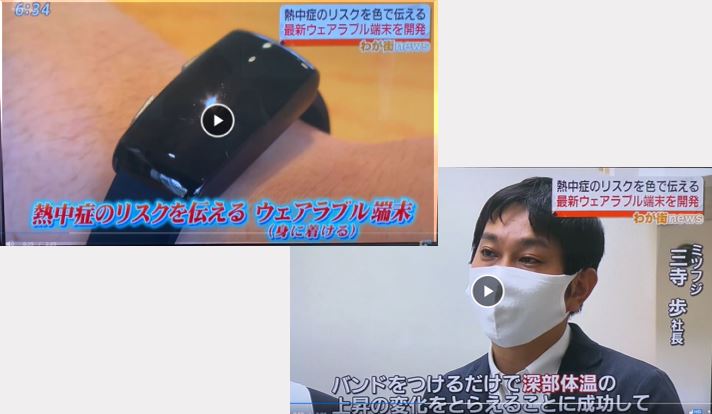 手首に着けるだけで事前に暑熱リスクが分かるリストバンド型ウェアラブルデバイス”hamon band”(ハモンバンド)を取り上げて頂きました。 ・7/22 福島中央テレビ”ゴジてれChu!”~Chuモク!わが街news~ ・7/24 読売新聞朝刊(関西・中国・四国エリア)経済面/読売新聞オンライン”熱中症、グッズで防げ…塩分補給ゼリー、リスク通知端末”