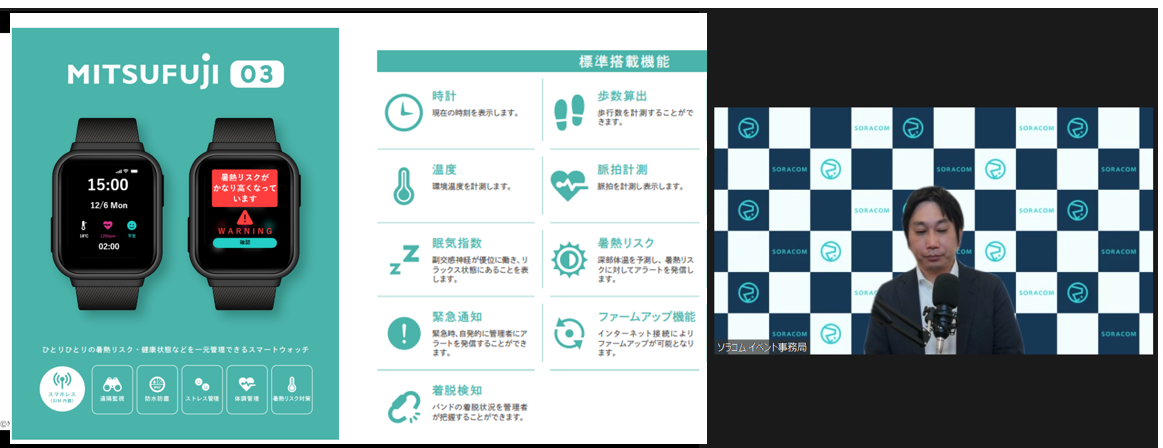 本日9月9日に行われたオンラインイベント「SPSパートナー会」にて代表取締役社長の三寺が登壇し、ソラコム様のSIMを活用したスマートウォッチ型ウェアラブルデバイス(MITSUFUjI 03)やその他製品やサービス紹介の機会をいただきました。ご視聴いただいた皆様、誠にありがとうございました。
