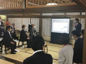 竹本科学技術担当大臣が京都市を視察され、当社三寺を含むスタートアップ企業経営者6名との意見交換が行われました。